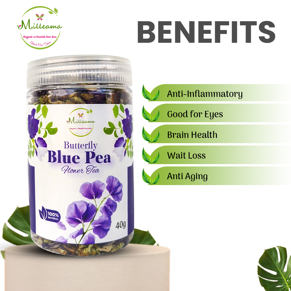 Made from the vivid blue pea flowers, this herbal tea is rich in antioxidants and helps improve memory, focus, and eye health. It’s also known for its calming effects, making it a great evening drink.